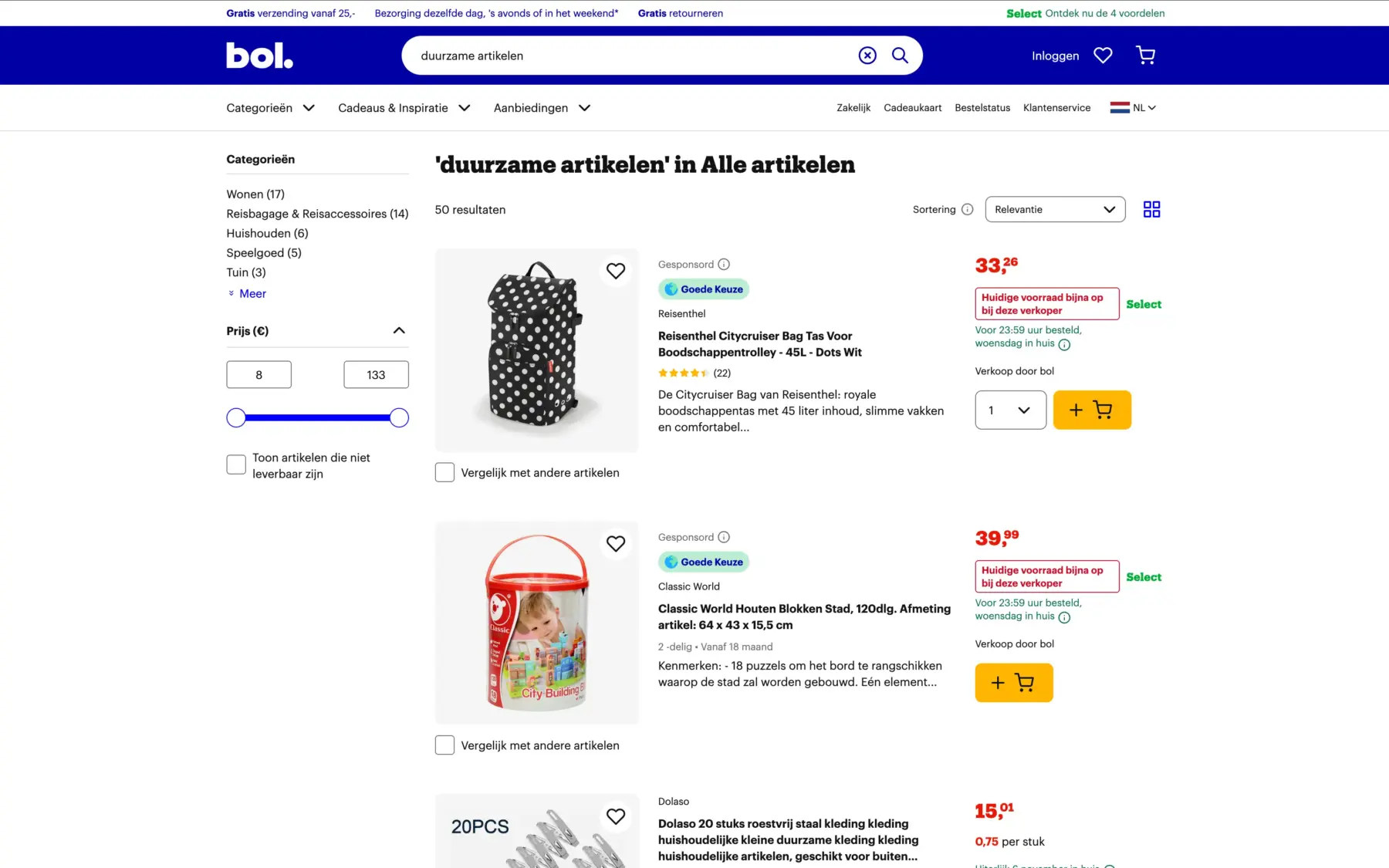 💡 Pro-tip: zorg dat je duurzaamheid niet alleen claimt, maar ook bewijst — met keurmerken, materialen en duidelijke copy in je productlisting.