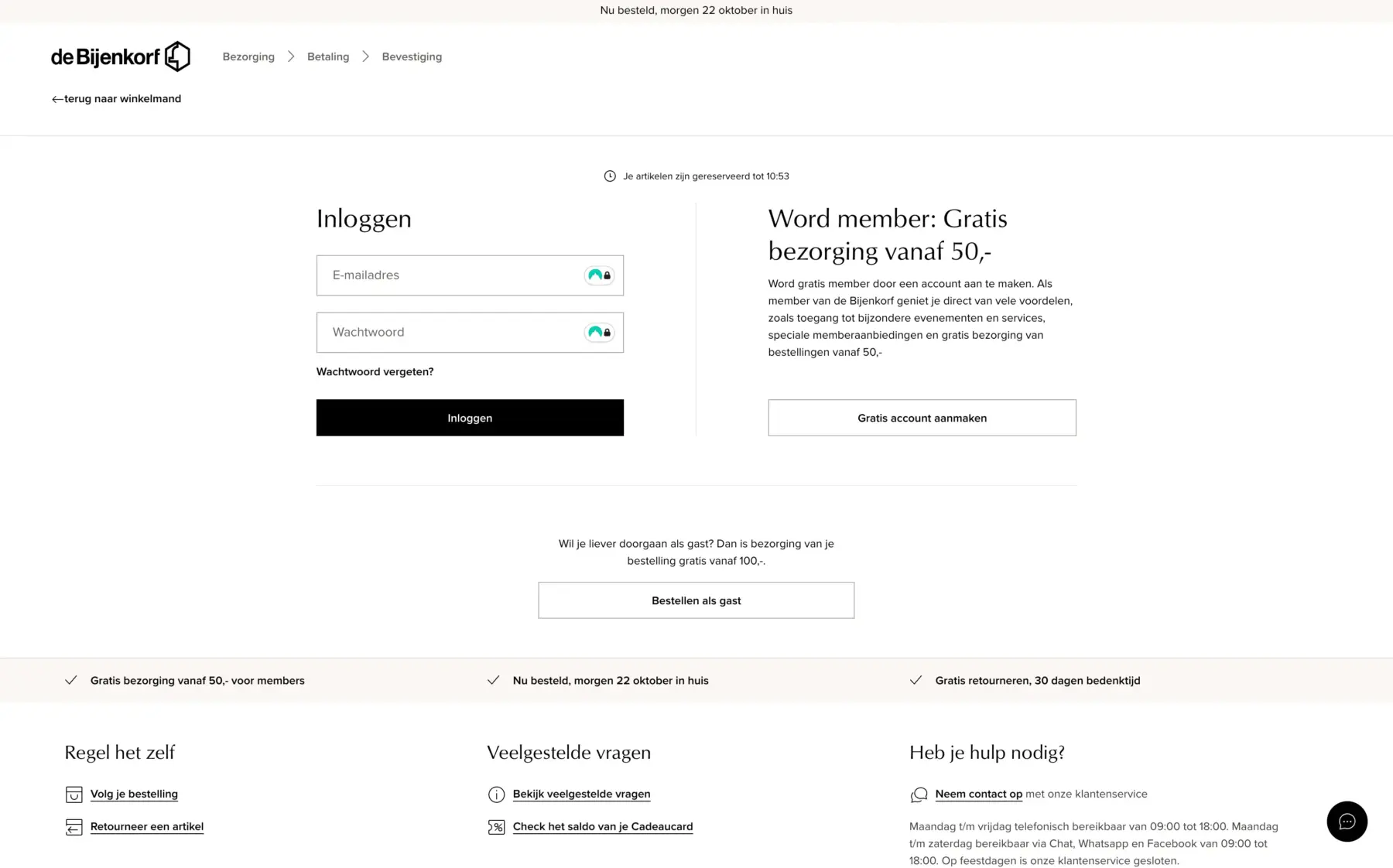 De Bijenkorf pakt het slim aan: nieuwe klanten kunnen gewoon bestellen zonder account. Pas na de bestelling krijgen ze een uitnodiging om zich aan te melden. Het voelt optioneel – en daardoor juist aantrekkelijker.