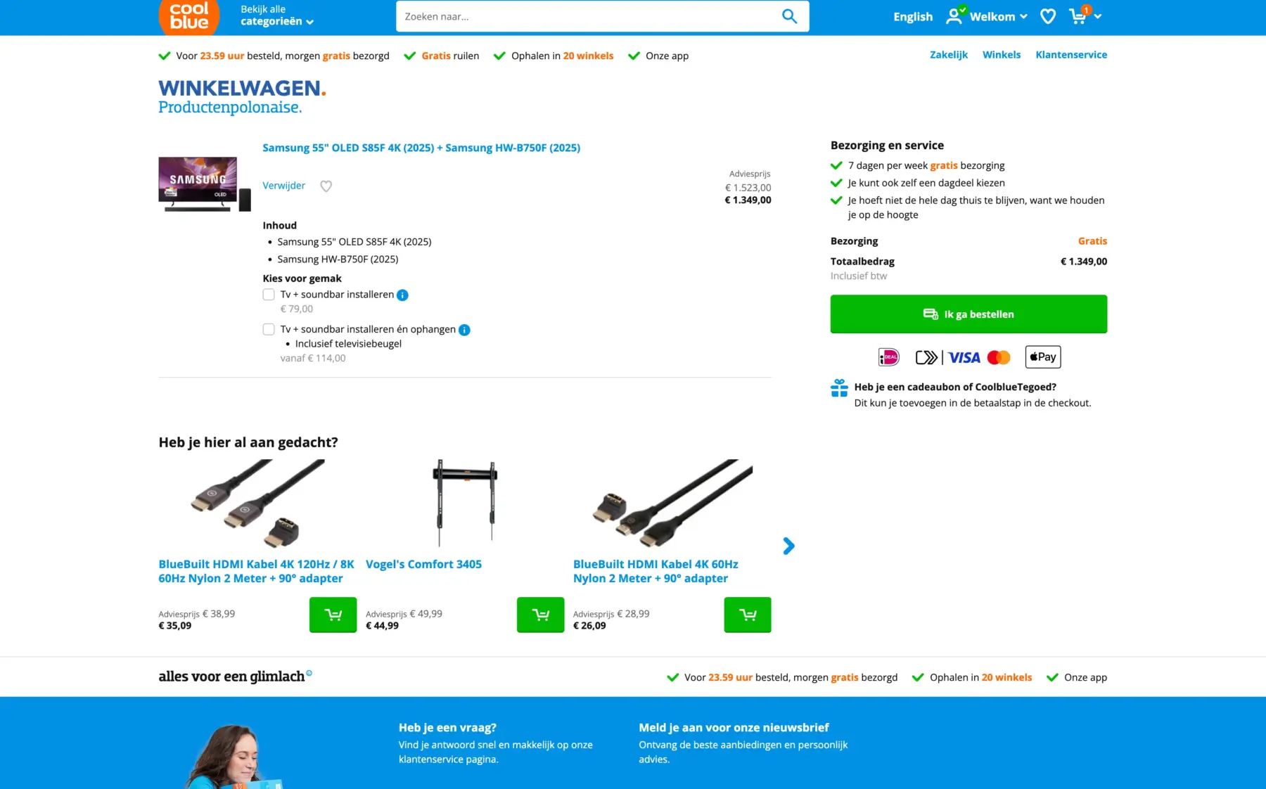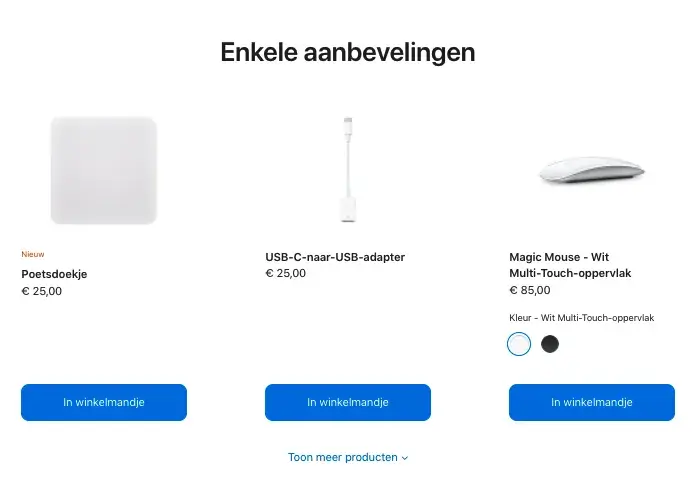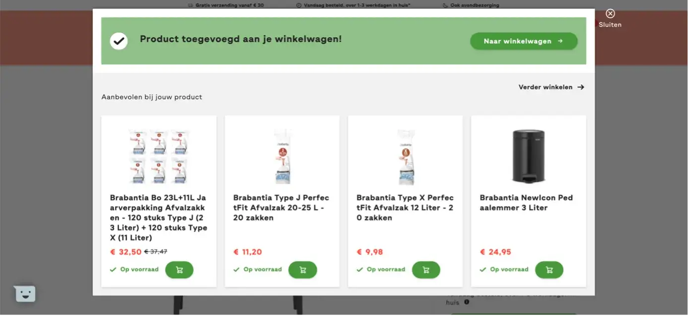 Die wijst de bezoeker richting afronden, én toont relevante cross-sells. Slim gebruik van aandacht én orderwaarde.