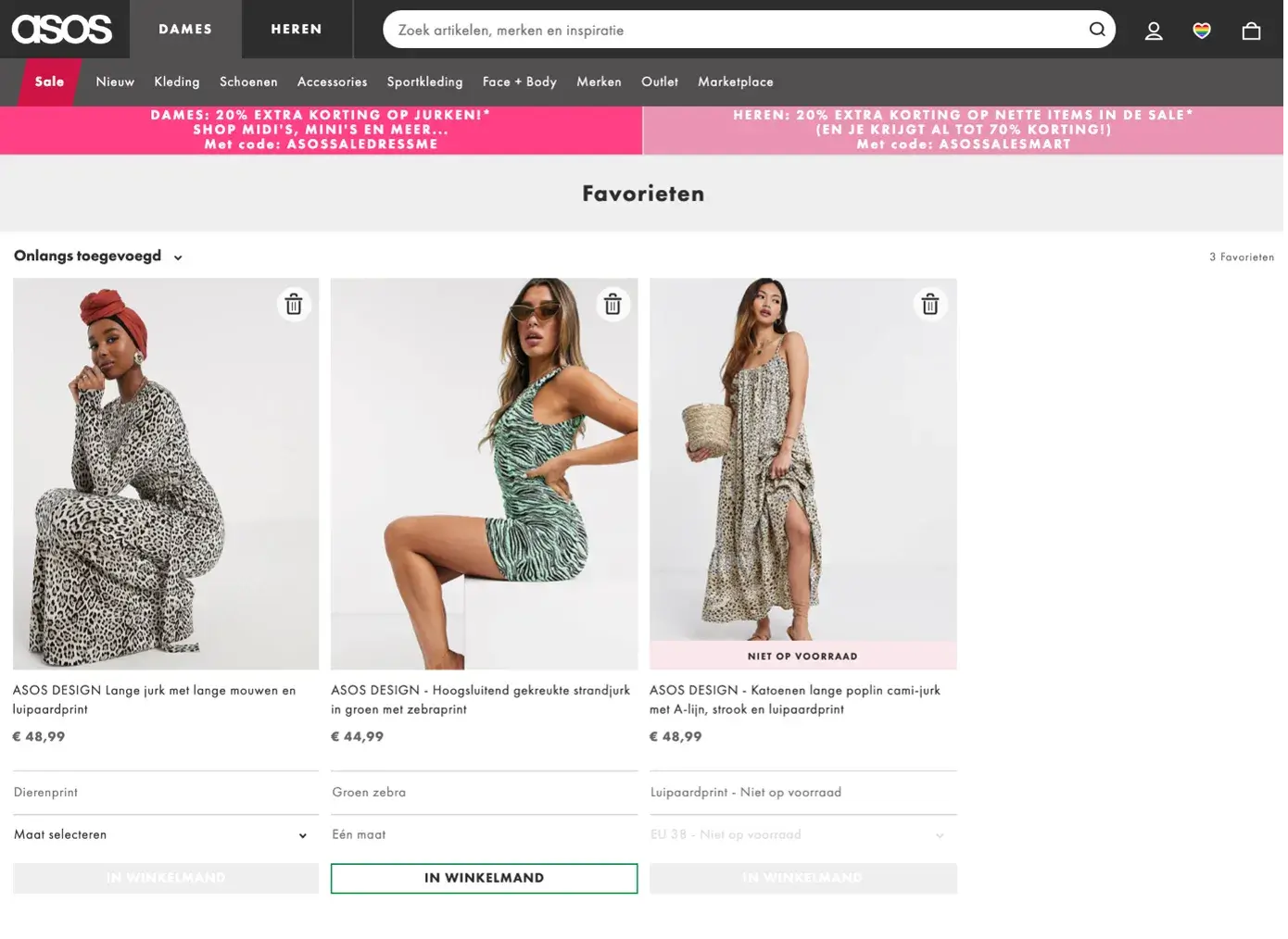 Via het harticoon in de header keer je makkelijk terug naar jouw selectie — en met één klik plaats je je favorieten alsnog in je winkelmand.